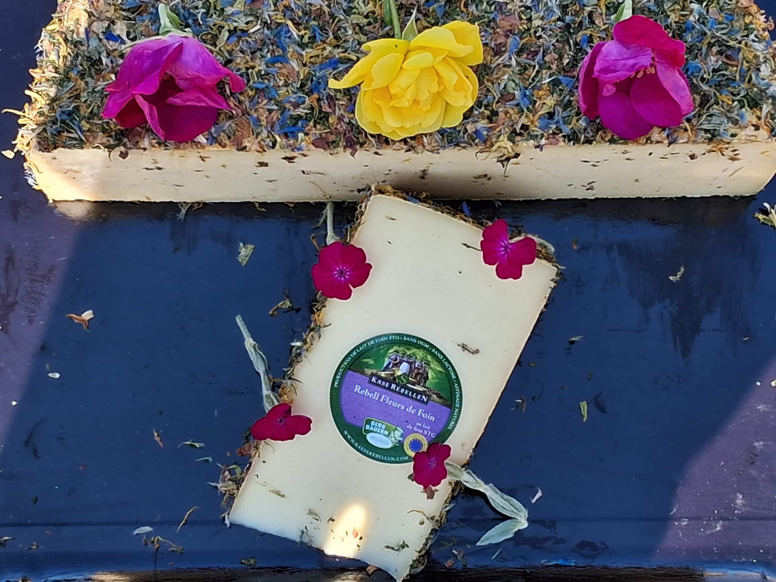 COMPOSITION : Lait de vache entier pasteurisé, présure, ferments lactiques, sel, mélange de fleurs (soucis, mauves, pétales de rose), épices, herbes.
